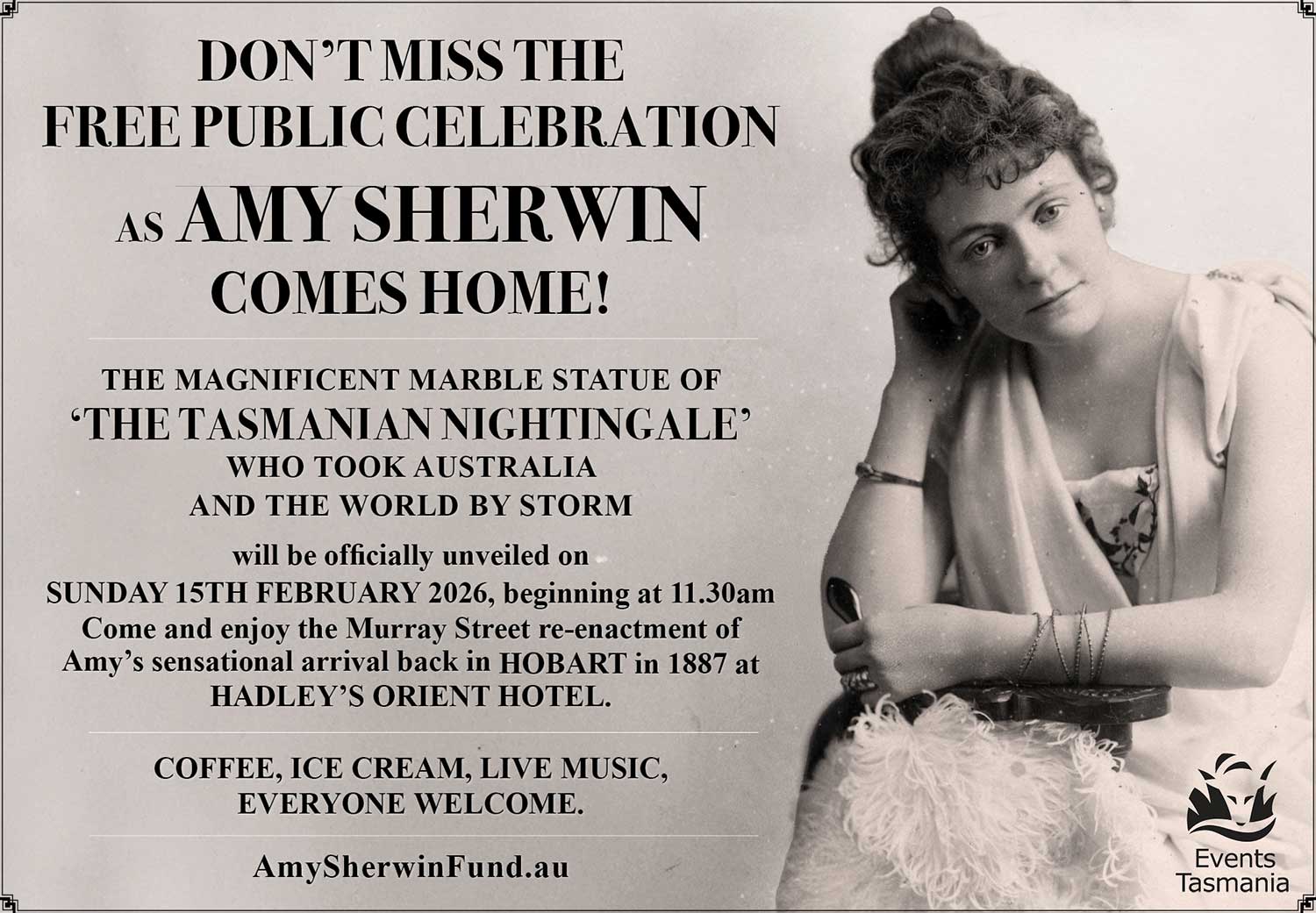 The Amy Sherwin Fund appeals to Tasmanians and music-lovers everywhere to donate towards the cost of her marble statue.